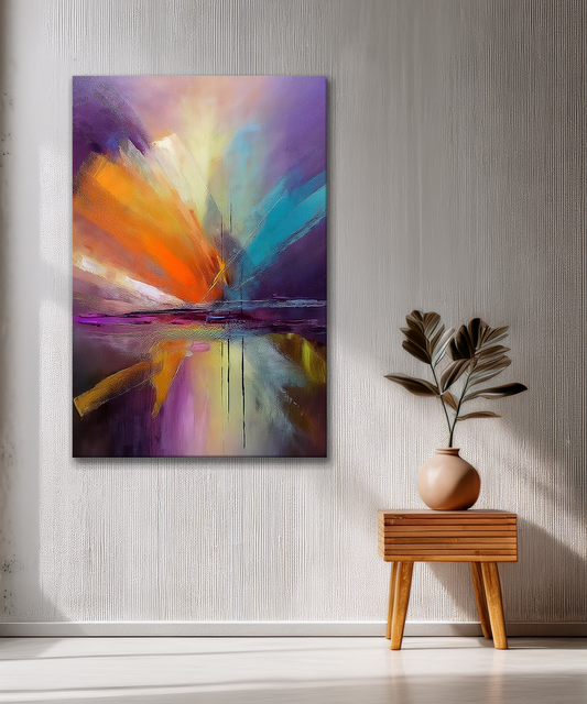 Ignite your space with color and motion through our Vibrant Energy Abstract Canvas Wall Art, part of the Bold Expression Collection. This captivating piece combines warm oranges, radiant yellows, and deep purples in a symphony of light and movement —...
