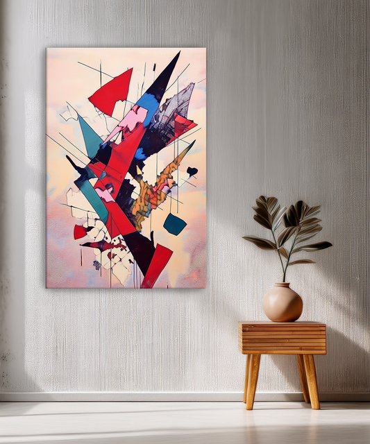 This striking abstract geometric canvas wall art features sharp lines and bold shapes in vivid red, black, and teal tones. Printed with Epson printers using Chrome 12 inks, it retains its intensity and brilliance for up to 200 years without...
