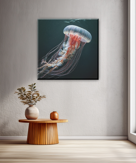 Immerse yourself in the quiet power of the deep sea with our Crimson Jellyfish Canvas Wall Art, part of the Ocean Glow Collection. This breathtaking artwork captures the fluid grace and hypnotic movement of a jellyfish drifting through the abyss,...