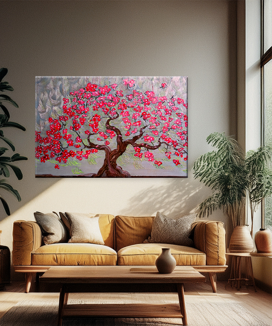 Bring timeless beauty into your home with this elegant blossoming tree canvas wall art. Featuring a graceful tree adorned with vibrant red flowers, the artwork combines rich textures with intricate brushstrokes, creating a captivating balance between strength and delicacy. Perfect...