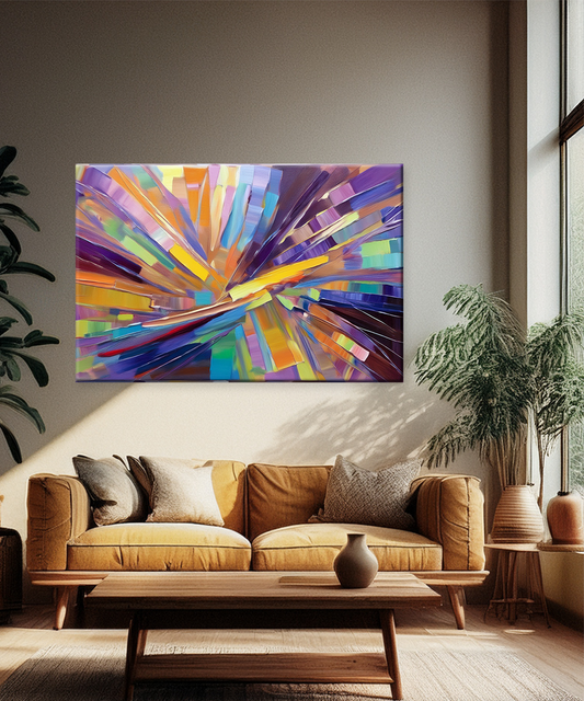 Infuse your space with radiant energy and bold color through Energy Fields, a mesmerizing abstract canvas that explodes with vibrant strokes of yellow, orange, purple, and blue. The dramatic composition creates the illusion of movement and light, turning any wall...