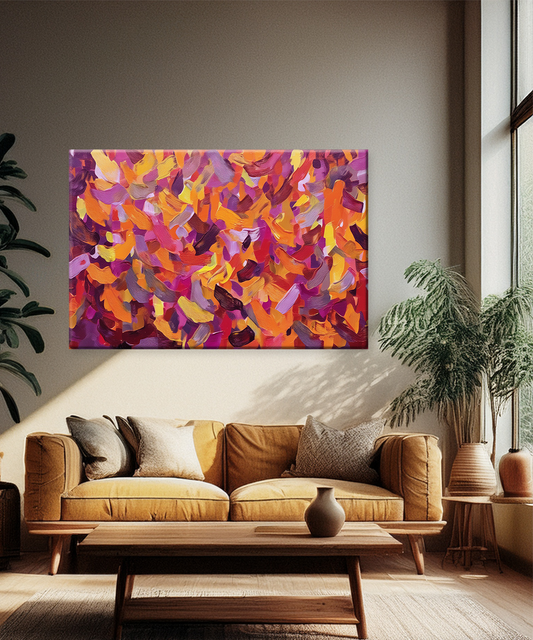 Ignite your walls with the radiant warmth of Crimson Mosaic, a bold abstract canvas alive with fiery reds, deep purples, and golden yellows. The dynamic brushstrokes create a rhythmic dance of color and texture, infusing any space with passion, energy,...