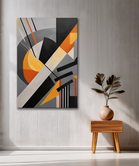 Discover the beauty of structure and motion in our Geometric Balance Abstract Canvas Wall Art, part of the Bold Expression Collection. This modern composition blends sharp lines and angular forms in tones of orange, black, gray, and white — symbolizing...