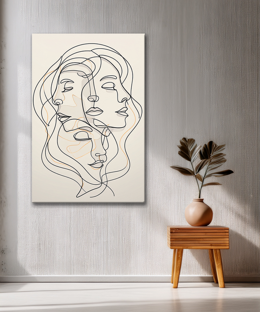 Celebrate the beauty of simplicity with Harmony of Faces, a modern line art composition portraying interconnected feminine forms. The smooth, continuous lines create a feeling of unity and emotion, making it a perfect centerpiece for any minimalist or Scandinavian-inspired space....