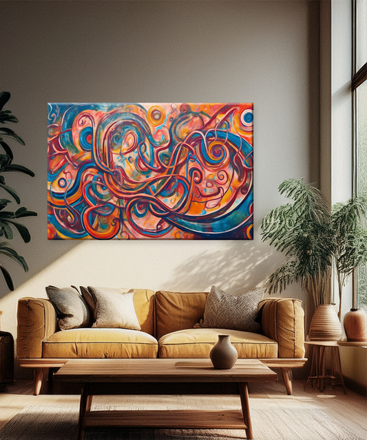 Infuse your space with energy and creativity through this mesmerizing abstract canvas wall art. With its swirling ribbons of red, blue, orange, and gold, the composition creates a labyrinth of motion and depth, evoking a sense of vibrant rhythm and...
