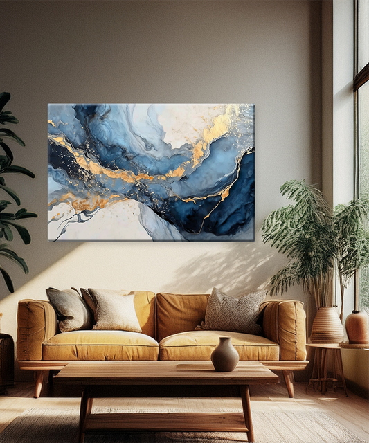 Luxurious abstract fluid art with deep navy and shimmering gold accents, perfect for elegant and modern interiors. “Blue Marble Flow – Abstract Fluid Art in Navy and Gold Canvas Wall Art” combines the elegance of flowing blue tones with radiant...