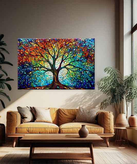 Enrich your space with this Tree of Life canvas wall art, featuring a mosaic-style design filled with vibrant colors and sacred geometry patterns. Celebrate harmony and connection with the Mosaic Tree of Life Canvas Wall Art. This artwork portrays the...