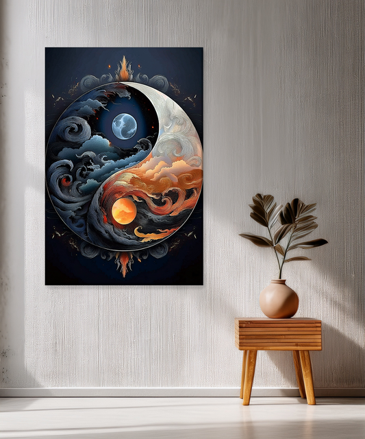 This captivating canvas unites fire and water, sun and moon, in a powerful Yin-Yang inspired design. Swirling clouds and cosmic tones create a dramatic harmony of opposites, symbolizing balance and unity. Printed with Epson technology and Chrome 12 pigment inks,...