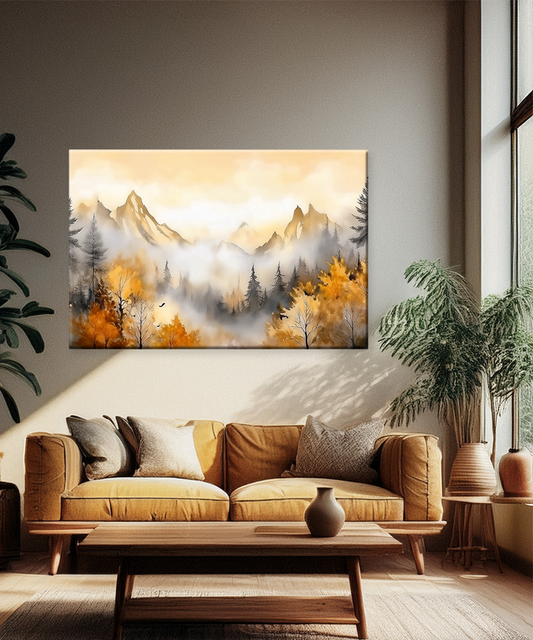 Add tranquility to your space with this canvas wall art, featuring misty mountains, golden autumn trees, and a watercolor-inspired forest design. Bring a sense of calm and mystery to your walls with the Misty Autumn Forest Canvas Wall Art. This...