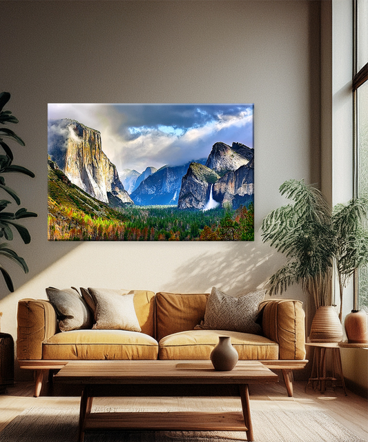 Add dramatic natural beauty to your walls with this canvas wall art, featuring towering cliffs, lush forests, and a cascading waterfall. Bring the grandeur of nature into your home with the Valley of Light Canvas Wall Art. This breathtaking scene...