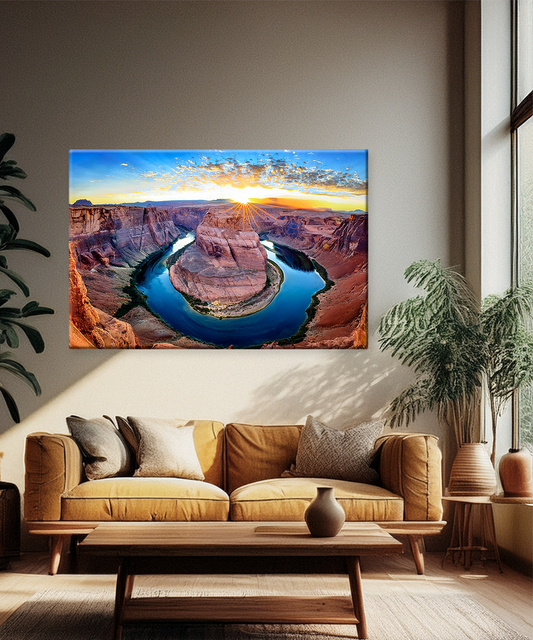 Celebrate the beauty of nature’s curves with this canyon canvas wall art, featuring a glowing sunset over a winding river through majestic red cliffs. Bring iconic natural beauty to your home with the Eternal Bend Canyon Canvas Wall Art. This...