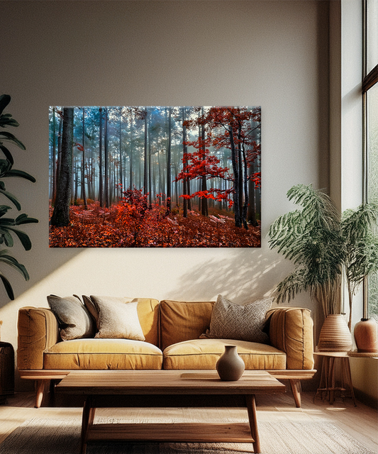 Add depth and mystery to your space with this autumn forest canvas wall art, featuring vibrant crimson foliage against a misty woodland backdrop. Step into a world of tranquility with the Crimson Silence Forest Canvas Wall Art. This captivating piece...