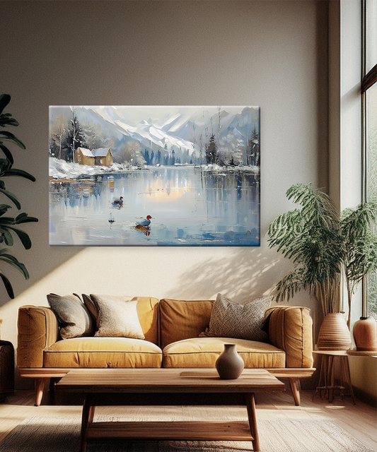 Add seasonal elegance to your home with this winter canvas wall art, featuring snowy mountains, a serene frozen lake, and hand-painted brush textures. Bring the quiet beauty of winter into your space with the Frozen Lake Winter Canvas Wall Art....
