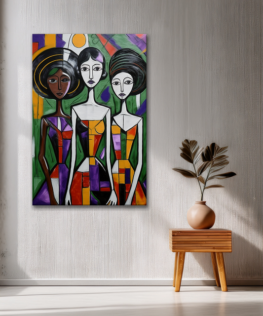 “Trio of Strength” is a captivating modern abstract canvas artwork that celebrates the grace and resilience of three women through bold geometric forms and vibrant colors. Printed with state-of-the-art Epson printers using Chrome 12 inks, this piece ensures exceptional clarity,...