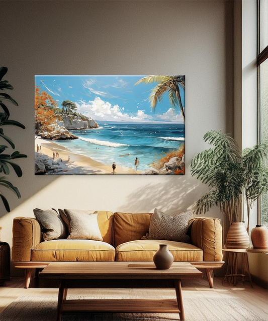 Bring the calm of the coast into your home with this canvas wall art, featuring turquoise waves, sandy shores, and a tropical beach paradise. Escape to the seaside with the Coastal Serenity Canvas Wall Art. This artwork captures a breathtaking...