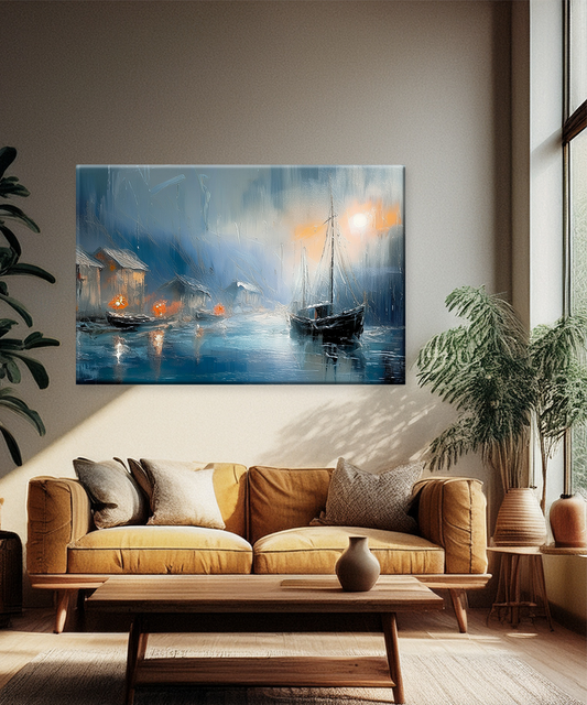 Add depth and atmosphere to your space with this nautical canvas wall art, featuring textured boats, glowing lights, and a rainy abstract seascape. Immerse your home in a moody coastal atmosphere with the Silent Rain Canvas Wall Art. This painting-style...