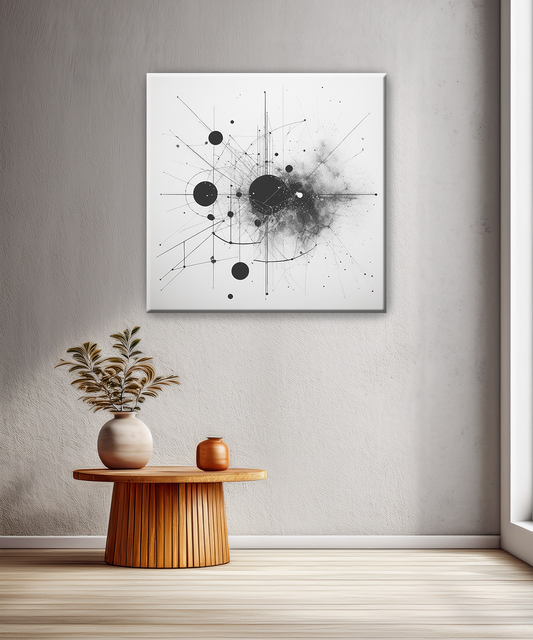 A captivating abstract artwork of geometric lines, dots, and cosmic energy in striking black and white. Printed on premium canvas with Epson professional printers and Chrome 12 pigment inks for colors that last over 200 years without fading. Discover the...