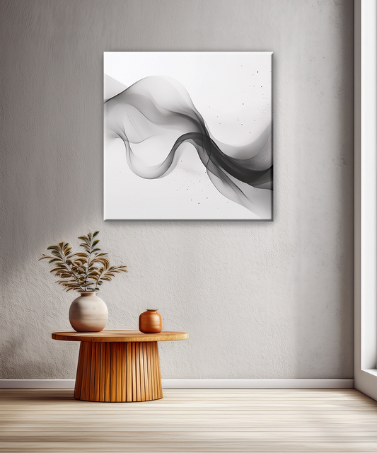 A graceful flow of black ink-like waves on a white background, blending simplicity with elegance. Printed on museum-quality canvas using Epson professional printers and Chrome 12 pigment inks for timeless endurance up to 200 years. Silent yet powerful, Silent Waves...