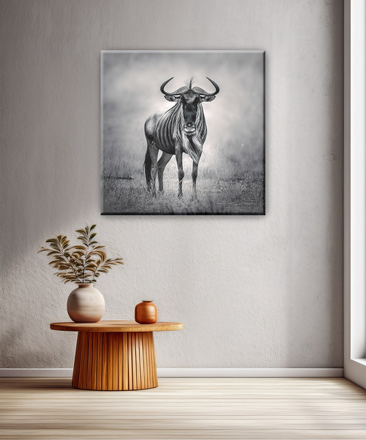 Transform your space with the raw power and elegance of African wildlife. This striking black-and-white wildebeest portrait captures the mysterious beauty of nature in its purest form. Printed on premium canvas using Epson printers with UltraChrome 12 pigment inks, every...