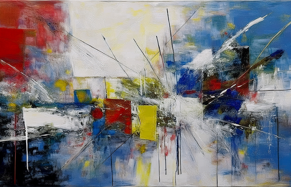 Rectangles and squares in vivid reds, yellows, blues, and blacks collide in a dynamic grid, while black and white lines burst outward from the center like an energetic pulse. The layered brushstrokes and expressive textures create a sense of depth and movement that commands attention. Produced using Epson’s advanced printing technology and Chrome 12 pigment inks, every detail is preserved with stunning clarity. With archival-grade durability that ensures vibrancy for 200 years, this artwork is a bold celebration of abstract design and visual rhythm.
