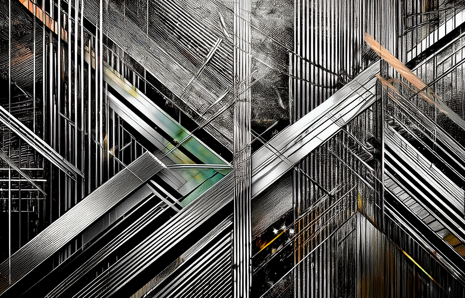 A bold interplay of metallic lines and geometric abstraction.
