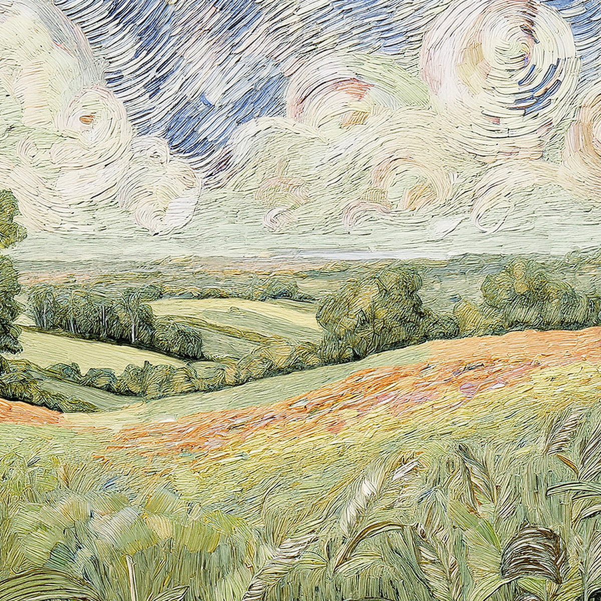 Immerse your home in the serenity of nature with Golden Fields, an impressionist-style landscape filled with movement, texture, and light. Inspired by timeless brushwork, this artwork captures the calm rhythm of golden meadows beneath swirling skies — perfect for creating a peaceful and elegant atmosphere.