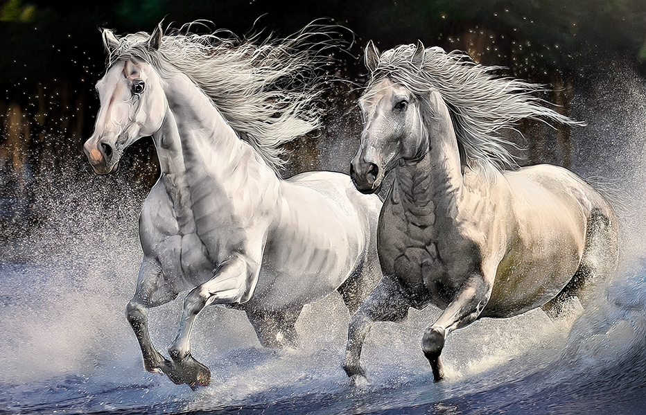 Feel the thrill of untamed energy with Waves of Freedom, a breathtaking canvas artwork depicting two powerful white horses galloping through water. Their flowing manes and splashing hooves radiate strength, motion, and unyielding freedom, making this piece an inspiring focal point for any interior. With its lifelike detail and dramatic composition, the artwork captures the raw beauty of nature’s most majestic creatures.