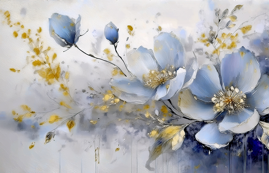 Infuse your home with grace and tranquility through Whispers in Bloom, a stunning abstract floral canvas artwork. Featuring soft blue petals accented with shimmering golden tones, this piece creates a serene yet luxurious atmosphere. The textured brushstrokes and muted background evoke a sense of calm and refinement, making it perfect for modern and classic interiors alike. Printed on premium-quality canvas with fade-resistant inks, this artwork delivers both lasting beauty and vivid detail. Ideal for living rooms, bedrooms, or elegant office spaces, it serves as a timeless statement piece that elevates any décor.