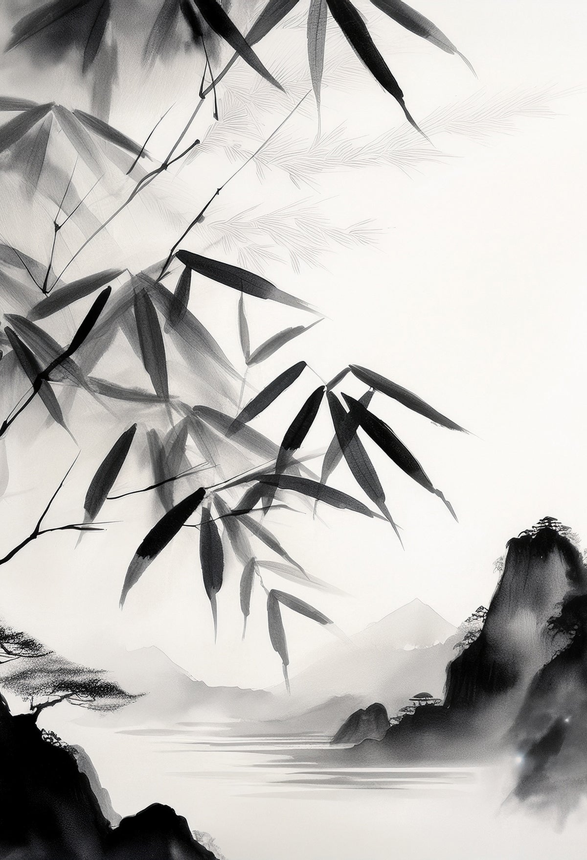 Immerse your space in calm and harmony with “Zen Bamboo Landscape”, a delicate Japanese ink wash canvas print inspired by traditional Sumi-e painting. The soft monochrome tones, gentle brushwork, and floating bamboo leaves evoke serenity and mindfulness — a perfect reminder of nature’s quiet strength.
